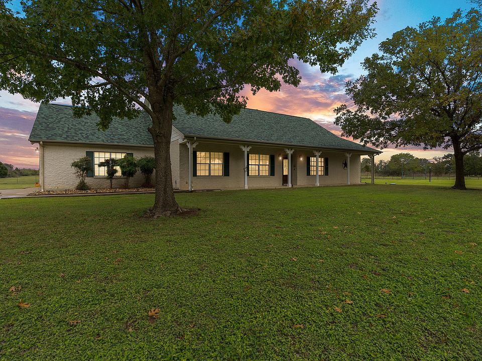Beautiful and peaceful 1-acre country property hosting a lovely 3bed/2bath ranch-style home. Featuring a fenced, gated perimeter and a large, well-manicured yard with vast northern views, this property will make you feel safe and secluded yet free and unconfined. Inside the home, enjoy a nice open layout with plenty of windows bringing in lots of natural light, a living room equipped with a propane gas fireplace, a spacious kitchen with an island, under-cabinet lighting, all appliances, and both formal and informal dining areas. An expansive primary bedroom suite with a large walk-in closet inhabits one end of the home, while a secondary bedroom suite fills the other end. Other features include a third bedroom/office, full laundry/mud room, covered front and back porches, central vacuum, water softener, 2-car attached garage, detached garage/shed with carport and raised garden beds.