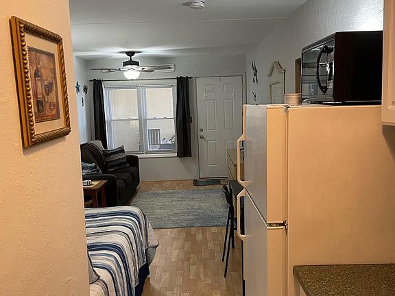 3rd floor Efficiency unit at Hamilton House Condominiums. Excellent location - 2 blocks to the Beach and Boardwalk, along with numerous restaurants and more! Unit has been updated with Glass Cooktop (2021), A/C unit with Heat setting (2022), and Ceiling fan (2022). Unit has a Queen Bed, Queen pullout sleeper Sofa, Table & Chairs, Dresser, and Kitchenette. Hamilton House has a Saltwater Pool, a second floor patio and grill area, there is also laundry and storage space on site. Low taxes, low condo fees, and a stable condo association. Condo fees under $200/month and include water, sewer, electric, and basic cable. Furniture included, just bring your bags and unpack!