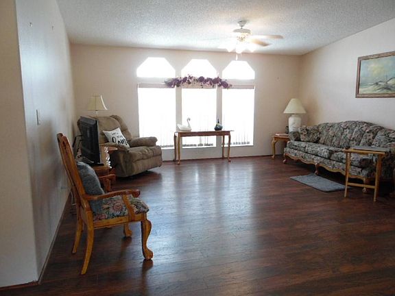 You'll love the charming and rustic aesthetic of this 3/2 featuring an open concept that is located on a large corner lot! Laminate flooring and ceramic tile cover the entire home INCLUDING the enclosed lanai. The kitchen features newer appliances. New roof and A/C in 2011 and new water heater in 2018. Being sold partially furnished, the purchase includes a golf cart plus ONE YEAR FREE GOLF! Contact our on-site resale office today to schedule a tour of this property before it sells!