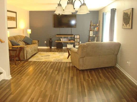 Open floor plan with this spacious 4 BR, 2 1/2 BA home in Hunters Crossing. Hardwood floors throughout bottom level. Kitchen features granite countertops and center island. Master has tray ceiling, his/her closets, and bath with separate shower, tub, and double vanity granite sink. Fenced back yard with swing set and patio area.