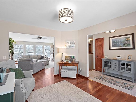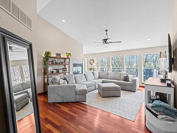 Check out this Beautiful 3 Bed,2 Bath home located in the sought out Bailey Station Subdivision! Step inside where you will notice an open concept, Vault ceilings, Beautiful hardwood floors, and a TON of Natural lighting! Right off the front door is formal dining room that you can use as a home office, extra seating, etc. Head to the kitchen where you will see the dual shared gas fireplace between the kitchen and living room. The kitchen offers an eat in kitchen with an extra nook, breakfast bar, stainless steel appliances and new quartz countertops. Down the hall you have 3 bedrooms including your primary bedroom with a large walk in closet and primary bathroom with separate shower/tub. Downstairs you will notice the full basement with a ton of natural light and a dual walk out basement that is Ready for your finishing touches. Out back you have a large deck, covered patio, and newly poured concrete with stone steps and firepit that was recently put in. You don't want to miss this one