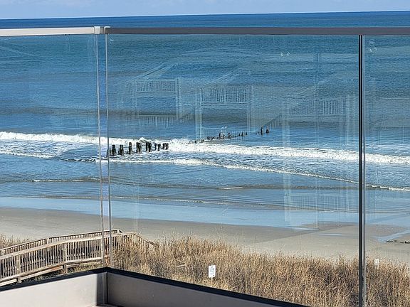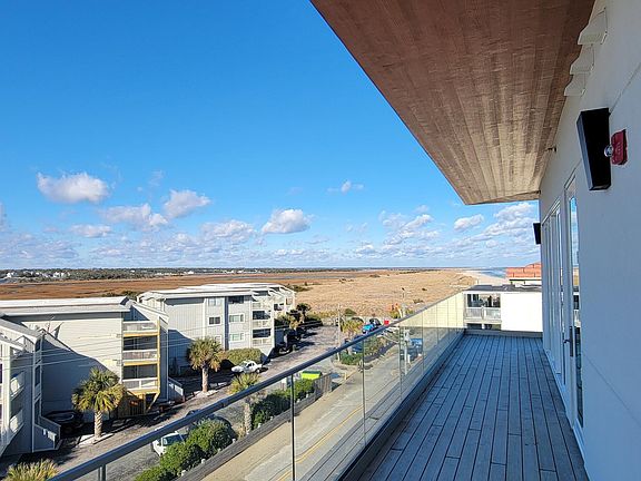 Absolutely stunning 4th floor penthouse with unbelievable views of the Atlantic Ocean and Intercoastal Waterway. Only four were built and these are the most luxurious and spectacular penthouse homes anywhere in Southeastern North Carolina. This spacious 1422 sq. ft. home features incredible views from every room, herringbone hardwood floors inside and a gorgeous kitchen with GE Monogram appliances, quartz countertops, full wet bar, beverage fridge and ice maker, perfect for entertaining your guests. The master suite and guest suite both feature beautifully tiled baths, floating vanities and incredible showers. Step outside to your massive teak deck with glass railings and soak in the pool and ocean views that go on for miles. There really is nothing quite like the penthouses at North Pier Ocean Villas. Stunning and completely redesigned, North Pier Ocean Villas is located on the North End of Carolina Beach. This dreamy and luxurious condominium community is taking oceanfront living to the next level. The upscale modern tropical exterior design is so clean, vibrant and elegant, it clearly shows what luxury and relaxation await you inside. This entire complex also features a new fire sprinkler system throughout, an incredible upgrade and safety feature not commonly found in other condominium units in the area. A new elevator and two staircases. Private parking is also included on the ground floor. Located directly next door is the Carolina Beach Pier, High Tide Lounge & Tiki Bar. A Carolina Beach landmark with a wooden pier over the ocean, fantastic spot for drinks, a bite to eat, ice cream or coffee. Carolina Beach is a very lively beach town with spectacular beaches, but also features a Boardwalk with rides and nightly events, natural parks, walking trails, great restaurants, shopping, nightlife, boating, fishing, surfing, skateboard park and great golf is close by too.