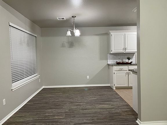 Single family home located in a quiet, friendly neighborhood. Open living area with gas log fireplace. Granite countertops with stainless steel appliances, oven, stove and dishwasher. Split bedroom plan with ceiling fans in all bedrooms. Master suite features granite countertop, double vanities, walk-in closet and a linen closet. Wood-look flooring throughout house. Abundant closets and storage space throughout. Spacious covered patio and private fenced backyard. Two-car garage with in-ground storm shelter for quick and ready access during tornado season. HVAC maintenance and weed control service provided. Home is conveniently located to all grade-level schools and located within the highly sought-after Choctaw-Nicoma Park school district. Conveniently located to shopping districts in Choctaw as well as Midwest City. Pets case by case basis and subject to approval. One year lease