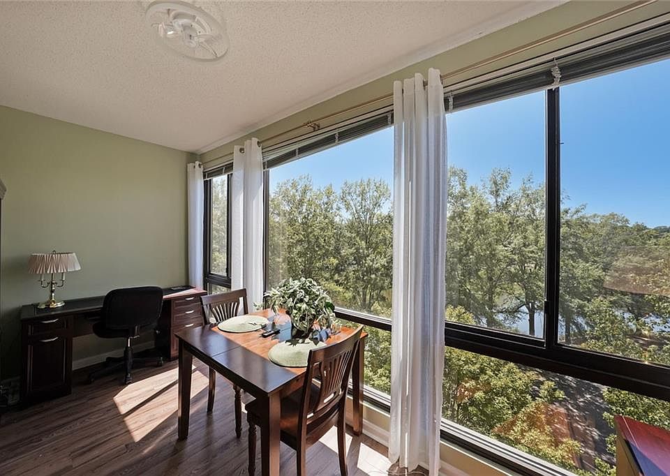 The view’s the thing! See every sunset! Light-filled sky-high lakeside view of trees and distant city lights at night. Freshly painted and new LVT flooring throughout. New microwave and backsplash, fans and lighting in BR and sunroom. The Dining Room has mirrored wall and high chandelier. Small improvements make living convenient (tub/shower bath with grab bars, inset hooks, hand held bidet: also a closet wall safe, USB outlet). A 2021 Carrier A/C unit was serviced 9/25. Utilize sunroom as an office, guest space, TV or reading nook. Clairmont Place is an 55+ INDEPENDENT Living Community with socializing, dining and exercising. Activity Director schedules music, parties and outings which include plays and touring. Indoor heated saltwater swimming pool, gardening, library, games give opportunities for interaction. Near Emory, VA and DeKalb Senior and recreation center, it is set amid PATH nature walking trails and is located in Decatur near Toco Hills, shopping and restaurants. Transportation provided for many trips, including nearby doctors. Monthly HOA fee includes: one meal per day, weekly linen service, bimonthly cleaning, maintenance, pest control and ALL utilities. This beautiful lake-front condo is available to see anytime! Come check it out today! Clairmont Place is waiting for you!