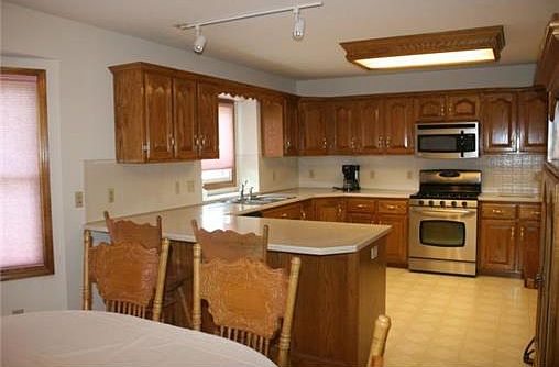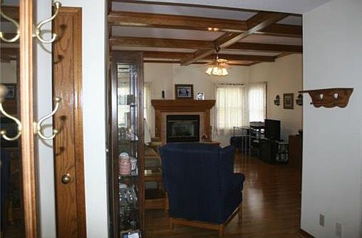 Quality built ranch. Everything you need on main level! Big kitchen and lots of cabinets, pantry, Corian counter top, breakfast bar, bay window, beamed ceilings in great room, vaulted ceilings, wood floor, basement has 2 staircases (inside house & garage). In good condition. Just needs some updating.