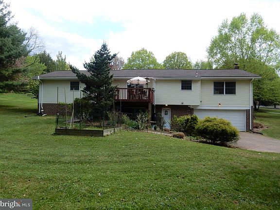 Unique combination of design can be found in this ranch style home which offers an in-home office with private entrance. Wide corner lot with eye appeal on .53 acres surrounded with mature trees and landscaping giving you that private and peaceful feeling. -And it is so convenient-, easy access to shopping centers, close to fire station, schools, highways, the city and just about everything. Designed to delight with superb flow greets you though the entire home. This ranch house offers 4 bedrooms and 2 full and one half baths. Two of the bedrooms have a connecting door providing flexibility. Formal living and dining room with hardwood floors looking out to the deck and backyard. The kitchen has been modernized with solid surface countertops, custom cherry cabinets with unique design feature for optimal blind space access, soft close draws, two pantry-s, convection electric range/stove, recessed lighting and cork flooring. Oversized family room offering windows on three sides, a pellet stove, ceiling fans, hardwood floors and tucked away laundry area. The lower level of this home will entice you even more. 800 sq ft of finished space with walk out to the backyard and entrance from the 2 car oversized attached garage. Recessed lighting, carpeting and half bathroom make this a top notch entertaining space. Ample storage area and closets. The extra space in the basement is great for an in-home office as it is ready to go with all the -tech- needs you have and private entry. Or if you are looking for in-law area or private living, the space in the basement has it all. Featured with this home is a 1 year HSA home warranty. This is a must see, not a drive by.