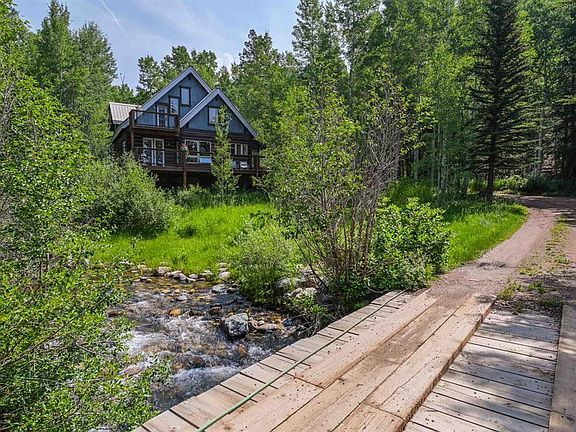 Embrace the ultimate retreat in this extraordinary custom-built log and timber frame home, nestled on a serene 4-acre sanctuary. With 500 feet of pristine Gold Creek frontage meandering through the property and bordered by the stunning Gunnison National Forest, this home offers unparalleled privacy and natural beauty. The home’s design emphasizes open, airy spaces with natural light flooding through large windows, capturing breathtaking views of the surrounding landscape. High-quality materials and finishes ensure both comfort and durability. The extensive creek frontage offers excellent opportunities for fishing, relaxing by the water, or enjoying summer picnics. The surrounding land provides ample space for gardening, outdoor activities, or simply enjoying the tranquility of your private retreat. The property is accessible year-round with county-maintained and plowed roads, ensuring easy access in all seasons. Included additional structures. A spacious 24' x 48' garage/shop with a loft offers ample storage and workspace for projects or hobbies. The little cabin a charming 10' x 15' cabin, built in 1980, features a covered porch and serves as a cozy sleeping area or additional guest space. This property is a short drive from local amenities and services, combining seclusion with convenience. This unique property represents a rare opportunity to own a piece of paradise with exceptional natural beauty and craftsmanship. Don’t miss the chance to make this extraordinary retreat your own.