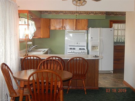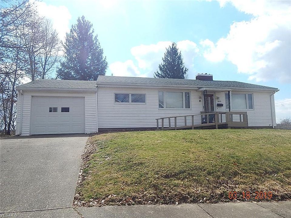 Everything you are looking for in town! Convenient 1 floor home with full dry basement. Open kitchen, dining and living room with brick fireplace. 3 nice sized bedrooms with hardwood floors. A corner location with 2 parcels, give you room for a garden, or patio space. Paved drive leads to 1-car attached garage. The basement has been waterproofed, home has a newer roof and water heater. Basement has an additional full bath, lots of storage space and could be finished.
