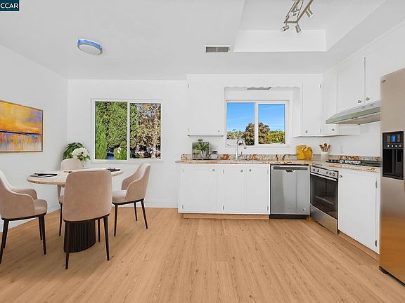 Can't-Miss Opportunity in Crestwood! This beautifully remodeled home nestled in a quiet cul-de-sac offers 1,717 sqft of stylish living, featuring multiple spaces perfect for both entertaining and relaxation. Enjoy cozy evenings in the formal dining room with a working fireplace or unwind in the bright and airy family room. Watch as natural light pours through brand-new custom windows. The modern kitchen comes complete with sleek granite countertops, new Whirlpool appliances, and new vinyl flooring. Step outside to a sprawling 11,970 sqft lot, dotted with fruit trees and brimming with potential—including room for an ADU! Conveniently located near BART, top-rated restaurants, and shopping, this home perfectly blends style, comfort, and convenience. Don't miss your chance to make this Crestwood gem your own!
