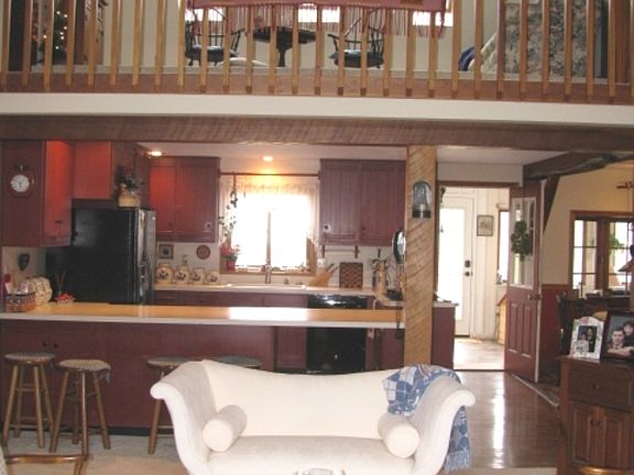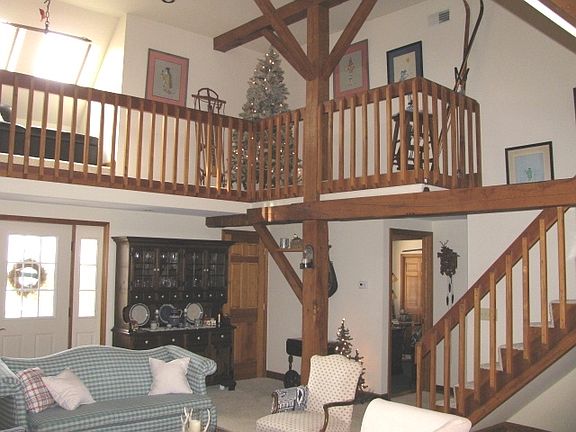 This one-of-a-kind incredible home is a MUST SEE with the 11.96 Acres, lake with dock & fountain, a 40' x 44' Barn, & an truly awesome house. Assessor shows structure built in 1870, but there was a complete re-build on the interior around 1990. As you enter the home, notice the two-story living room, wood beams, & lofts above the main level. The living, dining, & kitchen are all open & have wood flooring. The kitchen has a long breakfast bar and comes with all appliances. The dining room has a lovely bay window overlooking the sun room. The sun room is open to the back yard, to a deck, & to the laundry. The laundry has it all - lots of space, utility sink, & a half bath. There is a large bedroom with 2 closets (1 walk-in) & a full bath with separate vanity & sink area as well as a family room (currently an office) which could be another bedroom. The upper level continues with the beautiful woodwork & features 2 loft areas, one of which is a lovely 16' x 11' sitting area with skylights. The west end of this level features 2 bedrooms separated by a small family room. There is a very large walk-in closet & a full bath in this area. Also there are stairs leading to a large floored attic for great storage. On the east end of this level is the master suite with a huge walk-in closet, private bath with jacuzzi tub, sink and a separate area for the commode & shower. And the master bedroom opens to a lovely deck overlooking the property. Above the master is a cozy sitting area. The last room (currently office/den) on this level is fantastic. It opens to the deck and has beautiful custom bookcases which are included. Completing the home is the attached 2 1/2 car garage as well as a third garage area used for storage, craft area & exercise equipment. Just off the sun room on the main level is a spacious deck. The 40' x 44' barn is divided into two sections, each with concrete flooring, electricity, electric garage opener, vehicle door, service door, workbenches. Includes: Window treatments, range/oven, refrigerator, dishwasher, microwave, wall heat/air unit & electric fireplace in upper room, all electric garage openers, TVs in SE and West Center upper rooms, basketball goal, fountain for pond, bookcases in SE upper room, one-year HMS Home Warranty ($564 Value). Excludes: washer, dryer. Square Footage is Per Appraisal. Square feet & measurements are approximate & not guaranteed.