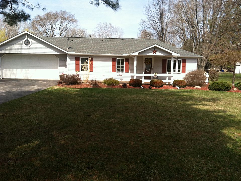 Charming inside & out! Lovingly updated & maintained to perfection, this 3 bedroom ranch sits on 1.06 acres and has an oversized 2 1/2 car garage with built in shelves PLUS an additional 24x24 heated garage with 220 & AC. Extensive updates include: roofing on house(new last summer) and extra garage (2012), furnace, AC, Anderson windows, insulation, eat-in kitchen with maple cabinets, new plumbing and electrical, septic tank & field, tiled yard to newly tiled ditches, asphalt drive, 6 panel doors, front & back decks, koi pond with waterfall, hot tub. A must see!