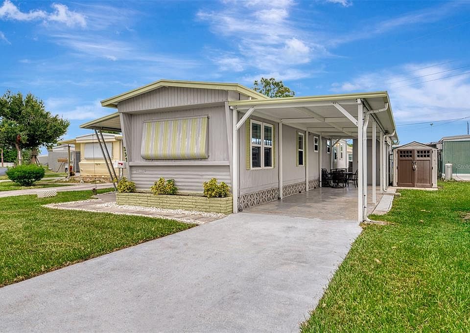 LOCATION! LOCATION! MOST AFFORDABLE 2 bedroom, 1 bath, 2 car carport, move-in ready, TURN-KEY MOBILE HOME, beautifully maintained & decorated, located in one of Englewood’s most sought-after friendly communities—Oak Grove Mobile Home and RV Park, A 55+ community. FULLY FURNISHED with upscale tropical décor and priced to sell, this charming home is the ideal mix of comfort, convenience, and Florida fun. just minutes to the Gulf Beaches! Step inside and be greeted by NEW ENERGY EFFICIENT WINDOWS, NEW CENTRAL A/C ($10,000 VALUE WITH TRANSFERABLE WARRANTY), and NEW LAMINATE FLOORING in the main living and dining areas, creating a fresh and inviting feel. The spacious FLORIDA ROOM (10x20) with vinyl windows is perfect for relaxing year-round, whether you're sipping coffee in the morning or enjoying a quiet evening indoors. The interior pops with TOMMY BAHAMA furniture and colors, giving the entire home a bright, beachy vibe. The kitchen is both stylish and functional, featuring white raised-panel cabinets, updated countertops, decorative lighting, and a roomy pantry. The Kitchen, Living room & Dining ROOM were updated with new insulation and mold resistant wall board. Whether you're making a quick snack or cooking a full meal, there’s ample counter space and storage to keep everything organized. The fully updated bathroom includes a QUARTZ DOUBLE SINK VANITY, tiled floors, built-in storage, and a full-size tub and shower combo—perfect for relaxing after a day at the beach. The master bedroom offers a peaceful escape with a large closet and plenty of storage, while the guest bedroom is just as comfortable, featuring WAINS-COATING ACCENTS and another large closet. Ceiling fans throughout the home keep things cool and breezy. Outside, enjoy a covered carport with LONG DRIVEWAY, FEMA-rated metal support beams—room enough for two cars or even a boat. including a LARGE METAL WORKSHOP SHED WITH ELECTRIC and full-size WASHER & DRYER, plus an additional 7x10 shed for even more storage. Oak Grove Park is packed with amenities—heated pool with new expanded pool deck, billiards, shuffleboard, bocce, putting green, croquet, library, picnic areas, and more—all for just $130/month, including lawn care! Just minutes from Manasota Beach, Englewood Beach, and the lively shops and restaurants of Old Dearborn Street and Venice Island. This home offers incredible value, unbeatable location, and a low-maintenance lifestyle. If you're ready to start living the Florida life, this gem in Oak Grove is waiting for you! Home is located on Rainbow Lane in the park, #137.