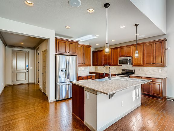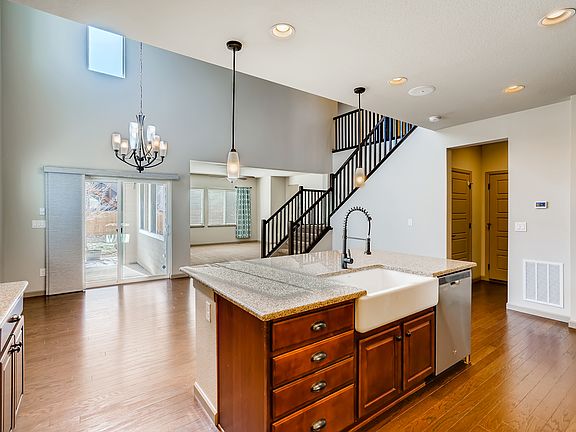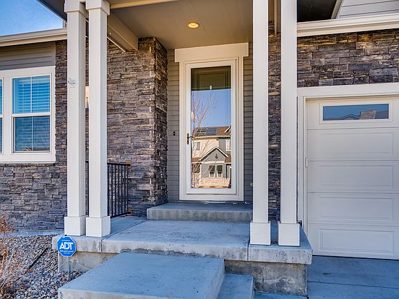 You will fall in love with this 3 bedroom, 3.5 bathroom open concept home that lets natural light settle in all the right places. As you step inside you will notice the gorgeous hardwood flooring as you walk back to the open living room and kitchen. You will love cooking in this kitchen which features a large kitchen island with room for seating, a farmhouse sink, steel appliances, granite countertops, and a walk-in pantry! Upstairs, the spacious primary bedroom offers a tray ceiling, a large walk-in closet, and a full en suite bathroom which features a luxurious garden tub and two separate vanities! Downstairs there is a bonus room with beautiful French doors that would make a perfect home office. Entertaining is easy in the backyard which includes a stamped concrete patio where you can set up a grill for summer barbecues. Located Sage Canyon Elementary, Wrangler Park, Ravenwood Pool, King Soopers, a quick drive to downtown Castle Rock and close to I-25 for easy commuting.