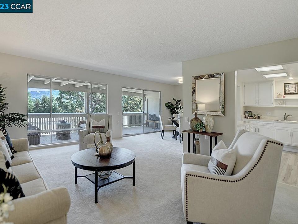 Escape to tranquility in Rossmoor Valley with breathtaking Valley/Mt. Diablo views from the covered deck—a true outdoor sanctuary. This popular Sequoia model seamlessly connects indoor and outdoor living, boasting designer features like a custom front door, newer double pane windows in bedrooms with Bali darken/filter window shades. In kitchen solar tube skylights that fill the space with light. Relax in the bathroom's new walk-in Jacuzzi shower, basking in sun from the skylight. Modern comfort meets convenience with electrical upgrades and in bathroom a washer/dryer in closet. Nestled in the coveted Rossmoor 55+ gated community, enjoy an array of amenities: golf, swimming, fitness, movies, games, and over 200 clubs from hiking to dancing. Embrace a vibrant lifestyle surrounded by sophistication and community.