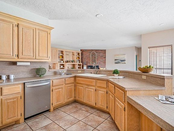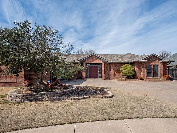 Located just off 36th NW & Hidden Hills, this Brookhaven home offers a prime location near Brookhaven Village shopping center, top-rated Cleveland Elementary, and Norman North High School, with quick connectivity to I-35. The unique, light-filled floor plan welcomes you with a double-door entry leading to a hallway showcasing stunning views of the pool through a wall of windows. To the right, three spacious bedrooms, including one that could easily turn into an office, are complemented by a Jack-and-Jill bathroom. On the opposite wing, the open-concept living space includes a dinette area overlooking the pool, a well-appointed kitchen with ample cabinetry, and a formal dining room featuring built-in buffet-style storage. The inviting living room boasts built-in bookshelves and a fireplace, while the private suite offers a cozy sitting area with garden doors leading to the patio, hot tub, and pool. The en-suite bath includes two walk-in closets, a whirlpool tub, a separate shower, and dual vanities. Recent upgrades include a new pool pump and filter (Fall 2024), a gas range cooktop (Fall 2022), fresh interior paint (Fall 2024), and updated appliances in 2018. The beautifully landscaped yard features lush trees, well-maintained garden beds, and a tall privacy fence along the west side, creating a peaceful retreat with a covered patio and expansive outdoor entertaining space.