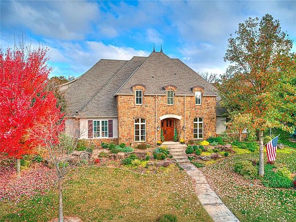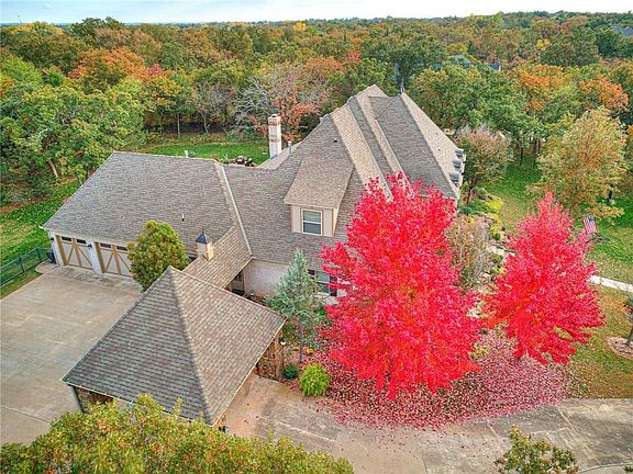 Wonderful East Edmond 5 bedroom home sitting on a beautiful 1.24 acre lot. This home is timeless with quality wood detail throughout, the wood floors are gorgeous & the home is pristine. This is a fabulous floor plan with 3 bedrooms on the main level. Upstairs you will find 2 large bedrooms, 2 full baths & an additional living area with mini-kitchen. The chef's kitchen boast a conventional oven & also a steam oven, gas cooktop & large walk-in pantry. The primary suite is huge with a fireplace & sitting area. The family room is the gathering place with tons of windows looking out to the sun room/game room with wood burning fireplace. The doors all open wide with access to beautiful grounds & pool with waterfall, an outdoor kitchen area & pergola that is perfect for entertaining or just relaxing. A generator is also a huge perk so you are never without power. This amazing home is just minutes to I-35 for an easy commute but is very private & quiet in sought after Hidden Lake.