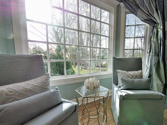 Stately yet modern masterpiece with park-like grounds & magnificent detail. 6,300+ sf with 6 bedrooms, 7 baths, & 5 fireplaces. Recent upgrades include interior painted, wood flooring installed in 2nd floor bedrooms and sparkling white kitchen cabinetry with oversized island and newer Stainless Steel appliances. 1,200 sf master suite with vaulted ceiling, huge WIC, spa bath, fireplace & private balcony. 2nd master suite option on main level that opens to the veranda. Custom cherry wood library/family room with vaulted ceiling, fireplace & french doors to patio. Bonus rooms above garage are perfect for au pair, in-law or guests. Enjoy the huge terrace, heated IG pool, pool house & built-in grill. 3 car attached garage. 7 min to train & town. Only 55 miles to NYC! Don't miss the VIDEO!