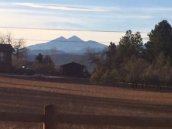 BREATHTAKING Longs Peak views!! Exceptional 2200 sq ft, 3BR/2.5 BA, custom brick ranch home. South exposure, large windows. Horses? Urban farmer? RV space? Have it all here! Premium corner lot on 2 acres WITH WATER UNITS . Spacious rocked circle driveway. Superb landscaping, towering trees. TWO NEWER furnaces. NEWER concrete tile roof. NEW hot water heater. 1,250 gallon septic system. HEATED 2-car garage. NEW garage door opener . Updated bathrooms . Spacious breakfast nook and kitchen. Family room with artisan wood French doors, laminate flooring AND natural gas fireplace/moss-stone mantel. Open living room. Ample natural light. Master BR with west view. Energy efficient dual pane windows and 4 ft overhangs. Built-in ironing board. Custom Hunter Douglas window treatments!! Tiled mud room OR office space! Detached workshop with electric and concrete floor! LARGE tiled patio! Peaceful/quiet bench nook with swing. Easy commute to Boulder, Loveland and Fort Collins!!