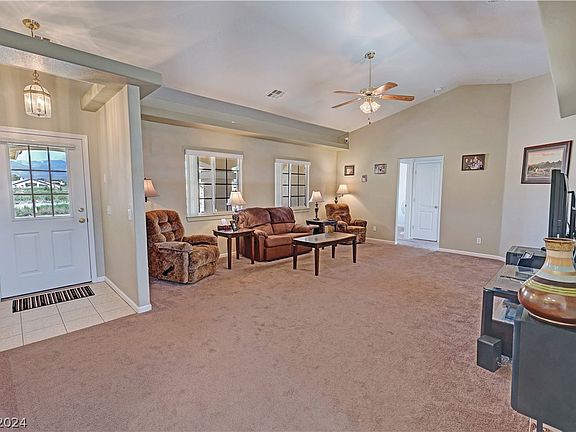 Charming, clean and well maintained home in rural Pahrump, NV at an affordable price! This stick-built home with NO HOA boasts a fully fenced backyard, perfect for privacy and pets, and is situated just minutes from shopping and schools. Stay comfortable year-round with central AC, heat, and a swamp cooler. Enjoy the split floor plan offering 3 bedrooms and 2 baths, adorned with custom paint throughout, and convenient upgrades such as an electric subpanel and manifold in the laundry room. All kitchen appliances and washer/dryer also included. Ample storage, including a huge walk in closet in the primary bedroom and full-length closet in the 3rd bedroom. Covered front and rear patios provide ideal outdoor spaces for entertaining or unwinding, as well as a perfect view of Mt. Charleston! West side of home also has 50 amp service and water for RV hookup. Don't miss out on this one, schedule your tour today!