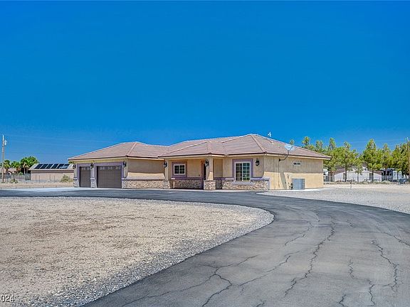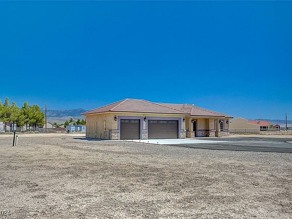 This immaculate, single-story home situated on a 2.274 acre lot has it ALL, showcasing panoramic views of the Spring Mountains. Built in 2016, this home features every upgrade one could dream of. The bright kitchen boasts an oversized granite island/breakfast bar with Whirlpool and Samsung stainless steel appliances, custom cabinetry, and lazy susan corner cabinets. The open concept floor plan offers the perfect environment to entertain. Both bathrooms with tiled shower, custom cabinets, and granite countertops. Fully fenced with 1 automatic and 1 sliding gate for the asphalt circular driveway which leads to the oversized 3 car garage. Unpack and move in! Get ready to fall in love with this home!