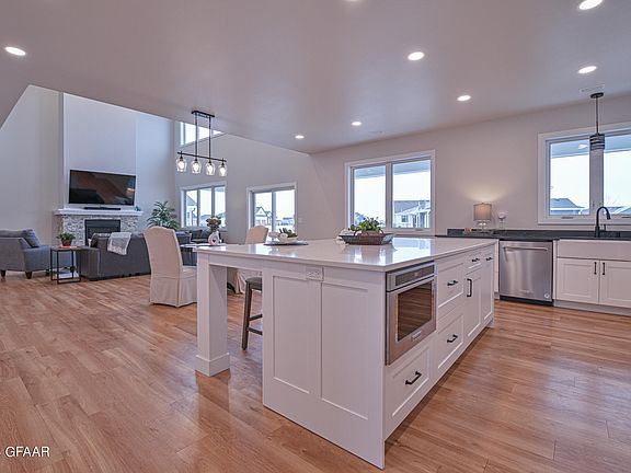 New to the market! Exquisite two-story residence boasting four bedrooms, three bathrooms, an open floor concept kitchen, and a breathtaking18-foot vaulted ceiling in the great room. Enjoy ample natural light through large windows, Spacious main floor master suite, quality finishes throughout & the added luxury of a three-car garage. Your perfect home awaits you! Features include: Spray foam walls, Floor heating zones garage & house, attic storage trusses over garage giving large storage area, custom cabinets from Weivoda, Quartz countertops from Brockmeyer, and a hidden walk in pantry.