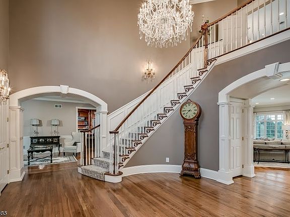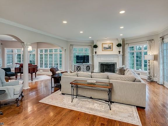 Ten pastoral acres, most farmland assessed, provide the setting for this expansive classic colonial. Drive deep through its rolling meadows to arrive at the 20-room manor set among lush landscaping & a sprawling pool. Beautifully crafted architectural detailing, oak floors & light-streaming windows abound. Four fireplaces, Juliet balcony, paneled library w/ loft, full guest/au pair suite, Music rm, family rm & kitchen open to each other the latter hosting an 8-ft. island, professional appliances, octagonal breakfast area. Master Suite includes sitting rm & luxurious marble bath. Additional BRs selectively feature raised ceilings, walk-in closets. Bringing the home to approx. 9900 sf of living space, the walk-out lower level hosts a theater, game areas, lounge, wine cellar, kitchenette, large office.