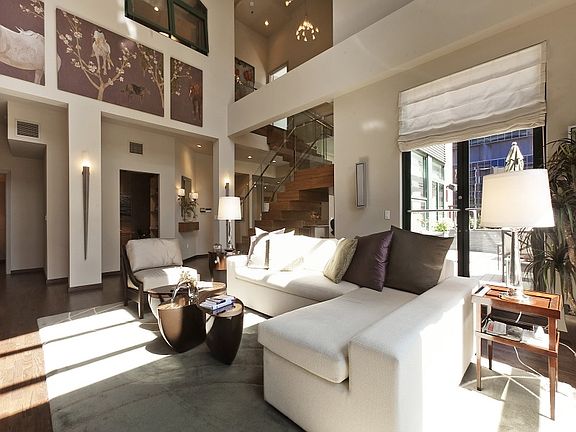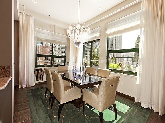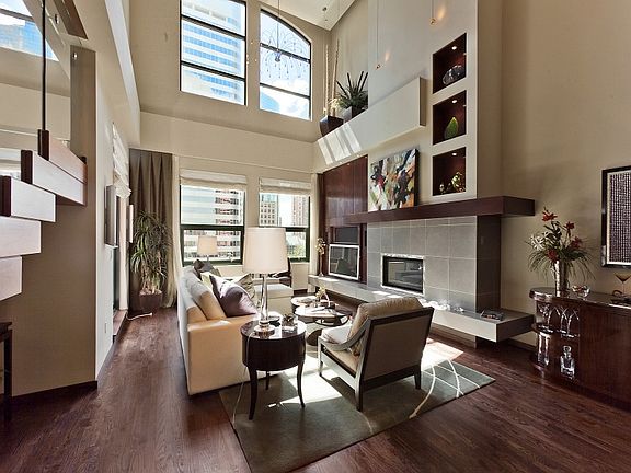Architecturally stunning loft unit with floating staircase, ribbon fireplace, professional lighting, art nooks. Two levels with large bedrooms upstairs and private office with custom built-ins adjacent to great room downstairs. Large dining room, full-size custom kitchen with maple cabinets, granite countertops and stainless appliances. Double doors from dining and living areas lead to large deck with built-in planters, irrigation and lighting. Whole house and deck wired surround sound. D&F Tower view. Walk to DCPA, Union Station, Larimer Square, Little Raven, LoHi, Mile High, Coors Field, RiNo. Amazing location. Quiet building with only 37 units lives like a home, not a hotel, in the center of downtown.