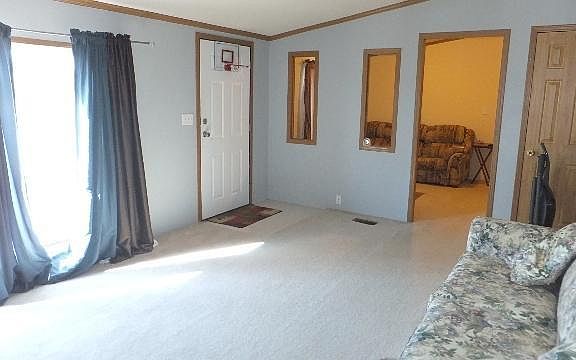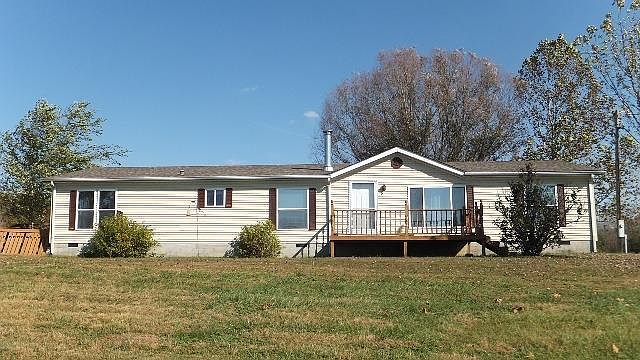 Private. Woods loaded with deer and turkey. Hunt on your own farm. Approximately 7 acres of woods. Very nice 1995 double wide manufactured home with 3 bedrooms, 2.5 baths, great room, living room, kitchen w/dining area and bar, den, utility room. Large master suite with Jacuzzi tub and closet. Vaulted ceiling in great room. Lots of cabinets for storage. Detached 3-car garage. Front porch, back porch and deck on side by the dining area.