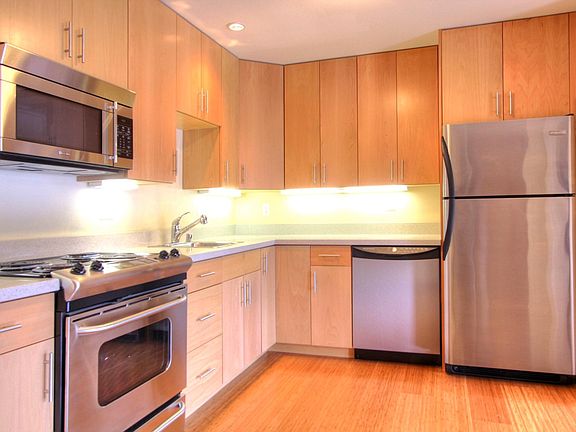 A rare vacancy. This condo was remodeled into a mid-century modern style. It has a kitchen with glittering stone countertops and new stainless appliances (dishwasher, garbage disposal, microwave, washer/dryer etc), also featured are gleaming bamboo and hardwood floors. First floor includes spacious South facing living room a dining area, and big storage/linen closet, open concept kitchen and 1/2 bath. Second floor includes 2 bedrooms and full bath. Walking distance to Fremont and Wallingford neighborhoods. This location is very walkable so most errands can be accomplished on foot. Nearby parks include Gas Works Park, Fairview Park and Roanoke Mini Park. Nearby schools include Hamilton International Middle School, B F Day Elementary School and Tops K-8 School. Walkable grocery stores are Westward Little Gull Grocery, Pete's Wines and Fremont Sunday Street Market and QFC. Nearby coffee shops include Essential Baking Cafe, Tiny Ninja Cafe and Stone Way Cafe. There are 24 restaurants within a 15 minute walk including Varsity Inn Restaurant, Pacific Coast Restaurants Inc and Cantinetta. There are excellent bike lanes and biking is convenient for most trips. Bike sharing is available from Pronto. Microsoft Connector @ N. 34th and Wallingford (one block from the building) RENT $2475 UTILITIES W/S/G $100/mo. Tenant has own electric account. SECURITY DEPOSIT $1000 CLEANING FEE $250 PARKING Lots of street parking. Cats OK with additional $350 security 6-12 month lease. Feel free to drive by at 1800 N. 35th St. but please don't bother the renters. Respond to this ad and I'll get back with you quickly to set up a time to view or answer any questions. Owner pays w/s/g. Tenant pays electricity.