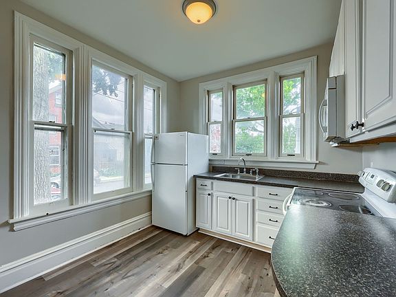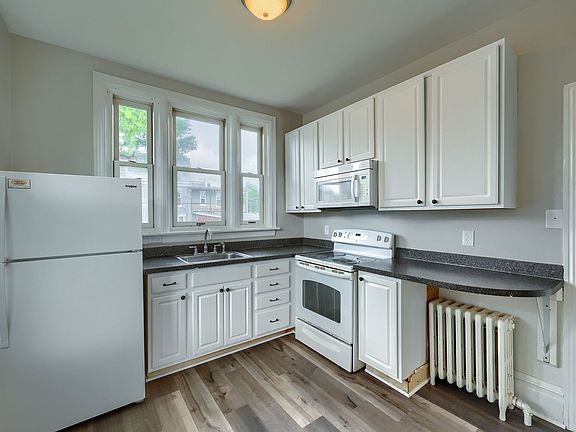 Large shared backyardRadiator heat sourceTons of natural lightModern white cabinetsLvp flooringWalk-in bedroom closet