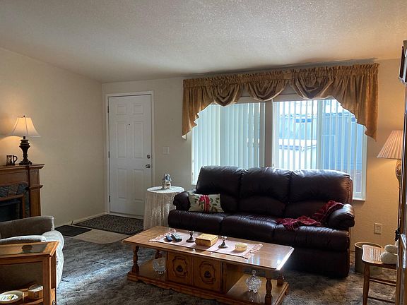 Very well maintained 2003 Manufactured Home in Lakeview's quiet Western Villa Estates. This split floor plan has a large primary bedroom with an en suite bathroom including a soaking tub, shower and large linen closet. All appliances plus the washer and dryer remain with the home. Covered porch off both the front and back doors. Small fenced in backyard. Park provides a covered carport and storage shed. The home is move-in ready and all furniture negotiable out the home's sale price. Monthly space rent is $413 and includes water, sewer, and garbage and snow removal. Requires pre-approval from the park manager.
