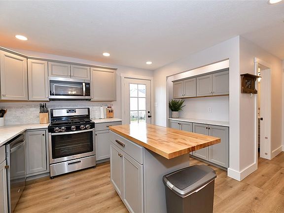 So many upgrades in this rare 1910 open floor plan home. In the kitchen, you'll see brand new cabinets, countertops, and appliances. All new vinyl flooring, carpeting, light fixtures, windows, drywall, and trim. The large master suite has a brand new double vanity, toilet, and walk-in shower. There is another updated full bath with a double vanity and shower tub, as well as an updated spacious half bath. There are 2 additional bedrooms and an office. The utility room is perfect for storage and holds the new (2021) water heater. New high efficiency HVAC system and ductwork (12/21). Outside, you'll see a wooden deck looking out to a nice-sized yard and detached 2 car garage, with a newly poured cement floor. New roof and gutters too!