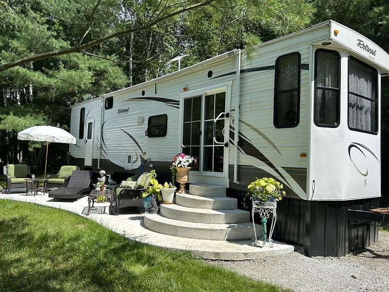 This is not your average Hunting Camp! Sitting on this beautiful 26.22 acre property, you'll find a 42' Camper, with 9' Ceilings and 8' bump-outs. New vinyl plank flooring, furnace, door wall and hot water tank have recently been updated. There is an electric fireplace, ceiling fans, and even A/C for those scorching summer days! The owners have paid to have underground power brought to the home. There's an additional power post near the road for guests to hook into. They'll even have their own deck to relax on and have a BBQ. A retractable awning is attached to the home and the convenience of Direct TV has been installed. This "Retreat" Camper is super insulated, including the skirting, and can be lived in year-round. There is no well or septic at this point, but the property has the perfect areas for both to be added. Currently, a 250-gallon water tank is underground for showering and sink use. The toilet has never been used, so only clean water goes into the drainage pipe. There is a porta-potty on site. As you walk the trails, you'll see the original 12x20 Hunting Cabin. It does have a propane wall heater, but you'll need a generator for power. Electricity can be permanently added from the main home, should you decide to do so. The hunting cabin does have a new wood stove for heat. A shared pond brings much wildlife to the property. Make an appointment to walk this gorgeous acreage today and be sitting in a blind by hunting season! PLEASE do not walk the property without an Agent.