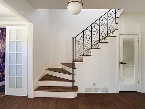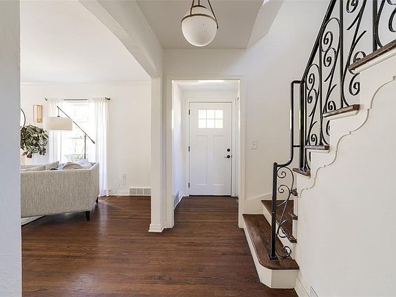 Marvelous 1951 buff brick beauty on a corner lot in historic Lincoln Terrace. Its clean, classic good looks are hallmarks of the post-war building boom. Balanced design elements like handsome, multi-paned windows and butted trim front door casing lend the home casual sophistication. A cheery green door and attractive landscape are instantly welcoming. Its rooms are splendid, spacious and filled with natural light. A gently curved staircase greets you from the foyer. The tiled fireplace with its carved mantel, framed by large windows, is the focal point of the living room. Wide, gently arched openings between the entry, living and dining rooms give the first floor an easy flow. Pops of whimsy include painted accent walls and in the dining room, a rich teal ceiling and sculptural chandelier. The powder bath’s fun floral wallpaper lends pizazz to the decorative scheme. Original wood floors throughout the home are beautiful. In the kitchen, warm wood cabinetry and a black-and-white tile floor in a geometric pattern are contemporary and fresh. The hexagonal tile backsplash, in bright white, brings an additional happy note to an already wonderful space. Through the kitchen and down a step, the den is ready for movie night. Style elements here include an exposed, painted brick wall, a wide bank of windows and stained concrete floor. It could be a large home office, sweet playroom, craft room or exercise space, should you wish. Upstairs are three large bedrooms, each with lots of closet space and a remodeled full bath. Its teal vanity and shelving and hexagonal mirror bring design elements of the two floors into harmony. Everyone loves a big deck and this one does not disappoint. There’s room for dining, relaxing or entertaining a group of your new neighborhood friends. The yard is large, with plenty of space to add a pool, or bring landscaping dreams to life. Life in Lincoln Terrace is neighborly, convenient and beautiful. Isn’t that just the ticket? Come see for yourself!