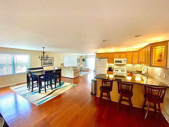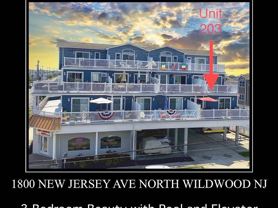 This Property is Exquisite. I was awestruck walking into this amazing property. Not only is it massive at 1625 square feet, but its gorgeously decorated and maintained. End Unit with so much natural light and Pool views make this the most sought after condo in this building. The open floor plan was expertly designed. Your Master Bedroom is just off your main entrance away from the rest of the property to allow you to sleep in while the kids are getting up and moving about. The Kitchen has a large peninsula making it a perfect breakfast bar and hors d'ouevre staging area. Upgraded cabinetry with under cabinet lighting and tile backsplash make this a key focal point. Just off the kitchen is your dining room and custom built bar that will make entertaining a pleasure. the room flows into your spacious living room. The space continues onto your Huge Deck. This space will be the place memories are made as you recap the days events while sipping a cocktail. There are 2 more bedrooms and shared bath in separate parts of the condo to allow maximum privacy when needed. Never a need to worry about hot water as there is a tankless on demand hot water system. Decks have all been recently replaced and paid for. The AC is new in 2019 as well. We have the Heat and cool covered. there is a common elevator ( No more lugging groceries and luggage up the steps. This property also offers an amazing Full Size Pool and Giant Hot Tub. There is also an outside shower and Bathroom in the pool area. Condo fees include your outside maintenance, Pool, Elevator, FIRE/Liability and Flood insurance. This property is guaranteed to amaze your buyers. While this home carries a NJ Ave address, your do not get that feel as you are the furthest unit from the road (Closest to Pool)Furnishings are negotiable