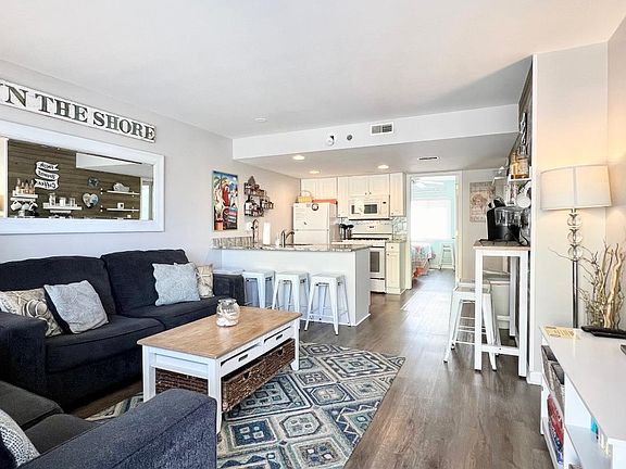 Own a piece of island paradise at Surf Song Condos! Situated on the second floor, this charming condo features two bedrooms and one bathroom, recently upgraded with luxury vinyl flooring throughout. As you step inside, you're welcomed by a spacious living area that seamlessly flows into the kitchen. The kitchen is fully equipped with all the essentials, including cookware and dishes, and boasts a large granite countertop island with barstools, an undermount sink, a gas stove, a built-in microwave, a new refrigerator, and a stainless steel mini-fridge for extra beverages. Relax at the newly added coffee bar, the perfect place to enjoy your morning coffee or evening tea. The condo offers two well-sized bedrooms: the first furnished with a queen-size bed, a full-size bed, dresser, ceiling fan, and a generous closet, while the second bedroom features two full-size beds, a dresser, ceiling fan, and another large closet. For extra security, there's a private owner's closet for your personal items. The condo is tastefully furnished with modern pieces and includes a brand-new heater/air conditioner unit installed on 5/1/2024. A nearby storage closet makes it easy to keep your beach gear organized, and the complex offers plenty of amenities: two heated pools, a Jacuzzi, barbecue grills, bike racks, two elevators, and a sun deck on the fifth floor—perfect for enjoying your morning coffee or watching Friday night fireworks. On the same floor, you'll find a laundry room with coin-operated machines and a patio with picnic tables, ideal for outdoor meals and game nights. Just 250 feet from the beach and the lively boardwalk, this condo immerses you in the best of coastal living. The current owner has fully rented the condo for the summer, bringing in over $36,000. Additionally, it rents for $1,300 per month during the winter. The HOA fee covers common area maintenance, flood and exterior insurance, trash, water, sewer, the pools, Jacuzzi, grills, and more. There is a $150 annual fee for WiFi and cable, though most owners handle this privately. In the future, owners will be responsible for their own electric bills. Pools are open from Memorial Day through late September. All furniture stays minus some decor on the walls and personal belongings Don’t miss your chance to own this slice of North Wildwood paradise!