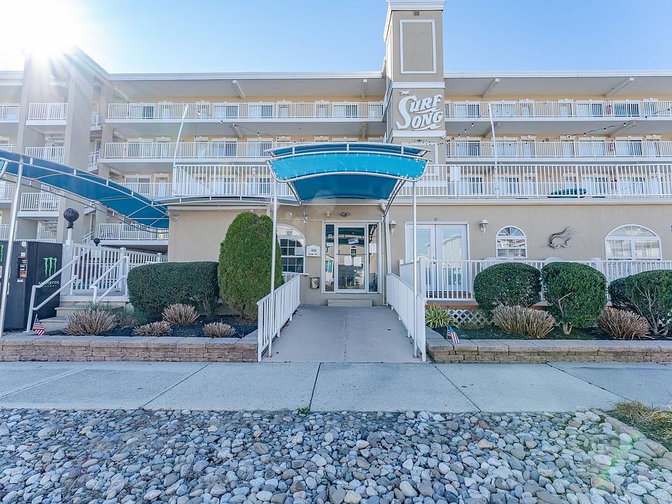 1 bedroom 1 bath unit in the desirable Surfsong Resort on 18th and Ocean. Spacious living area with newly replaced maintenance free vinyl plank flooring and freshly painted. Perfect beach get away in a great location, either use for your own enjoyment or rent for great rental income. The HOA covers almost everything! HOA fee includes your heated pools, 2 elevators, flood insurance, 4 grills, electric, water, trash, and sewer. Cable and Wi-Fi are included for $125 a year.