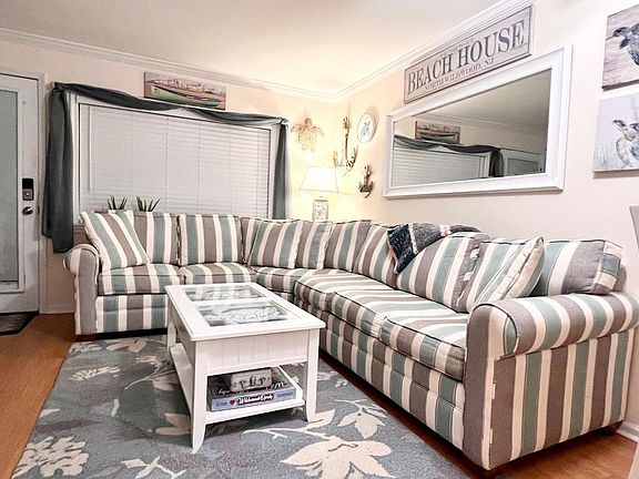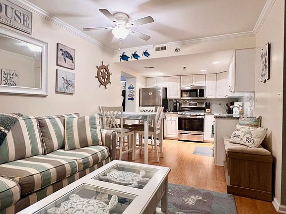 Unit 402 in the highly sought-after Surf Song Resort community is now available for sale! This charming fourth-floor condo features two bedrooms, two full bathrooms, and stunning ocean views. As you enter, you'll be greeted by a spacious living room and kitchen combination complete with an electric fireplace, wrap around sofa and a large flatscreen TV. The unit boasts extra-durable bamboo floors throughout. The kitchen is equipped with recessed lighting, new granite countertops, white cabinets, and a beautiful, tiled backsplash. The stainless-steel appliances remain with the condo. The master bedroom offers plenty of natural light and includes its own private bathroom with a stand-up shower. The second bedroom features ocean views, a large closet, and newer carpeting that is three years old. This well-maintained unit has never been rented out and includes numerous upgrades such as new blinds, California bamboo floors, professionally painted, Wi-Fi thermostat, digital locking door and so much more. The main bathroom has a brand new walk-in shower and a new A/C unit with heater installed in January 2024. Other amenities in the SurfSong complex include two heated pools, a hot tub, grills, a fifth-floor sundeck, bike racks, a large patio, and proximity to the beach and boardwalk. This unit also comes with one designated parking spot.