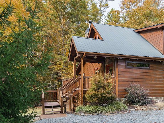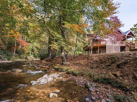 Welcome to The Wandering Wilscot Lodge....where you are surrounded by 500 acres of USFS AND 678 feet of rushing Wilscot creek frontage that wraps around your home! A place truly like NO other with level grounds to access the creek at any point on the property. The creek allows for the PERFECT hang out for kids & also plenty of fly fishing. Sit on your deck and take in the fall foliage and the waterfall across the water, and host all of your family and friends on the lawn that runs along the creek bank. Completely surrounded by USFS but you're still just 10 minutes from Downtown Blue Ridge on all-paved roads! Inside on the main floor is the an open-concept kitchen/living area with a wood burning fireplace, the master suite & covered wrap around deck. Upstairs you'll find another master suite with a private balcony and bunk room for the kids. The terrace level contains another living area, bedroom & bathroom all with acid stained concrete floors for easy upkeep. Open the doors, step outside and fish right from the creek bank. Successful turn-key rental ready for you!