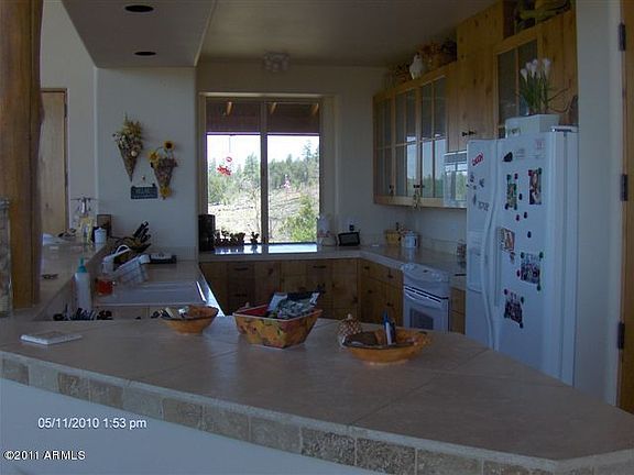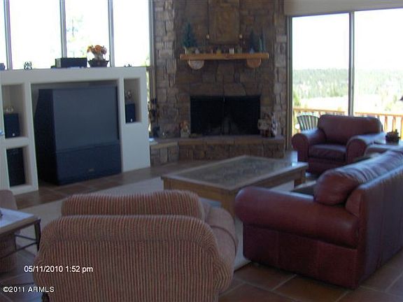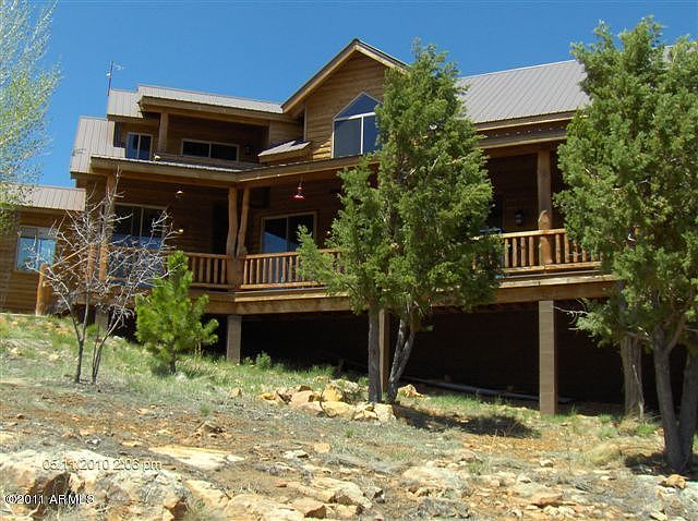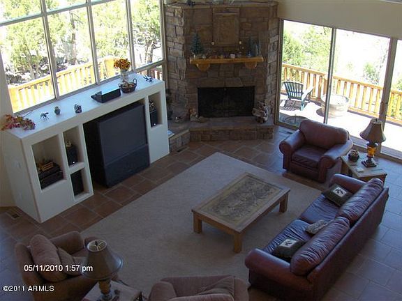 Cedar sided chalet has incredible views! This 3Br/3Ba cabin has a rustic feel with all the modern conveniences. Wall of windows & lots of built ins. Soaring t&g vaulted ceiling with exposed beams, wood burning fireplace in living room & basement. Snail shower, travertine tile, cedar doors and cabinets. Walkout basement, extra storage room and oversized 2c garage has pull thru garage doors too. Wraparound Trex deck and backs national forest. $325/yr HOA dues includes water. Priced to sell!