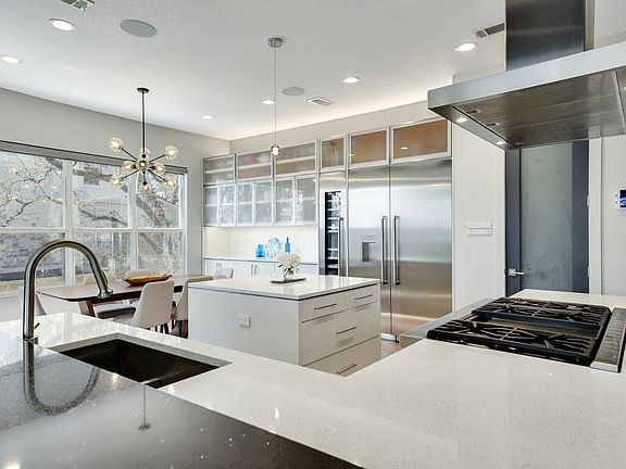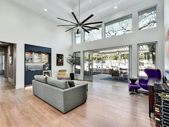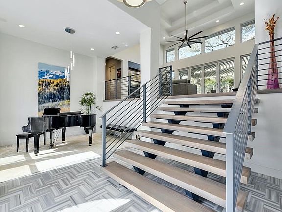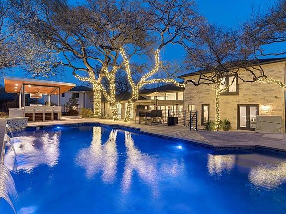 Stunning full modern 2015 renovation with incredible attention to detail. This turnkey Westlake estate is a 5 bedroom, 4 bath home located in the gated section of Parkstone which backs to greenbelt. You will find beautiful marble and wide plank oak floors as you enter the home. A downstairs private office allows for work at home life and many private Zoom meetings. The floating staircase with modern steel railings invites you to the first large living area that has a custom bar which extends to the outdoor patio through collapsible wall-length glass doors. The open concept kitchen has all custom cabinets with soft close mechanisms, quartz countertops, Thermador SS appliances, column wine refrigerator and walk in pantry. This area extends to the living room where you can see views of downtown Austin and relax by the gas fireplace. Home has custom cabinets, walk in showers, modern LED Lutron lighting, Sonos driven sound system in-ceiling and outdoor speakers, business-grade indoor/outdoor wifi, multiple beverage refrigerators and Hunter Douglas blinds. The primary bedroom is the perfect resting spot with a linear fireplace and space for your Peloton workout. The primary bathroom has a gorgeous floating bathtub, walk in shower, large custom windows as well as a custom designed by California Closets. Main level goes bedroom has operate outdoor entry. Upstairs you will find a studio or second office with balcony. 3 bedrooms and 2 full baths with walk-in showers round out this top level. The home has a new roof, 3 new a/c units, and 3 new tankless water heaters. The large swimming pool/hot tub has entirely new equipment, water features and PebbleTec surface. The outdoor space is complete with a covered kitchen, 3 separate covered sitting areas and retractable patio roof to allow shaded dining on those warm summer afternoons. If you want to entertain with ease or just enjoy relaxing by the pool, look no further. Welcome to your new home!