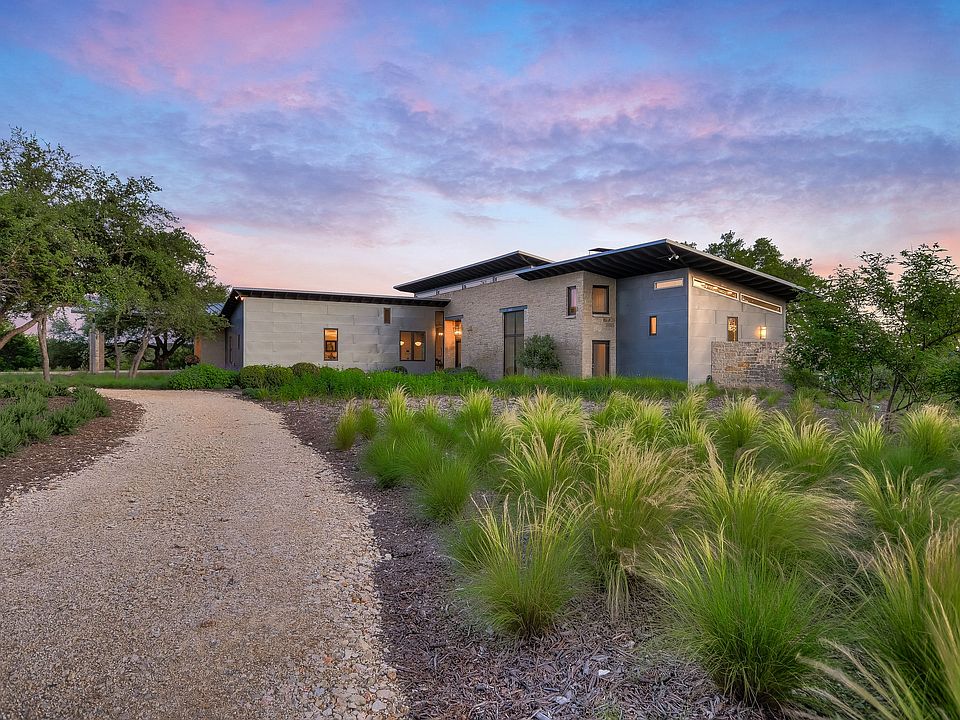 Spectacular 27 acres w/ 433 ft of deep water Blanco River frontage, mins from Wimberley & 45 minutes from Austin, TX. Positioned above the river the home captures panoramic views of the Texas Hill Country. Modern ranch house is a perfect retreat w/ clean lines, sophisticated finishes & casual living. Features include solar orientation & eco friendly design, wildlife exemption & abundant low maintenance landscape. Manicured road leads to Blanco River perfect for year round kayaking, fishing, & swimming.