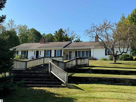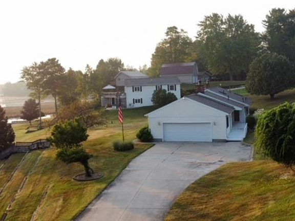 Welcome to South Dease Lake in Hale! This Custom Built home rests on a gentle hill providing panoramic views of South Dease Lake. It sits on 3 lots which provides just under 200 feet of private canal frontage. Plenty of room on the water to dock multiple toys until ready to jump into the lake action. Location is quiet and peaceful with easy access. This is the first time this well cared for home has been available for sale. A ranch style home with two fireplaces, custom kitchen, finished basement, beamed ceilings and more. It offers main floor living and plenty of opportunity to take in the views with multiple windows. The kitchen is a spacious gathering spot with a large dining area, bar, brick hearth/fireplace and a few steps away from the front porch. The main bedroom is expansive with a full wall of closets and an En suite bath 11 x 14 complete with a shower, soaking tub, double vanity and sky lights. Main floor also features second bedroom, office and laundry. Finished basement is egress with carpeted family room, half bath and two NON-conforming bedrooms along with a 600 sq ft workshop. Other features include outdoor sprinkling system, whole house generator, water softener, Oak floors and garden perennials. Paved driveway and 2.5 car garage. One of the prettiest lots on this lake!