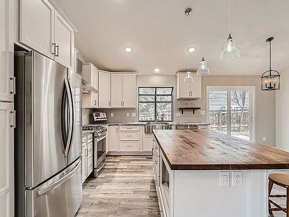 Must see totally remodeled 4-bedroom 3-bath home in sought after Village West Fort Collins neighborhood. Kitchen is 100% re-finished featuring new RTA soft-close cabinets with under-cabinet LED lighting, farmhouse sink, brand new high-end LG Refrigerator and large top of the line LG Natural Gas stove/oven with stylish Vented Hood. New Granite counter tops and a solid-walnut-top island w highlighted by hanging Pen Lights. Vaulted ceilings in light airy open concept Living Room/Kitchen/Dining area with Sliding Glass door access to Deck right outside for summer barbeques. Bosch Dishwasher. New floors with waterproof scratch-resistant material. New Canned lighting in kitchen and living room. Two brand new full bathrooms. Master bathroom 100% new everything from the tiled walk-in shower to the tiled floor and new vanity, sink, mirror and toilet. Shared bathroom also 100% new, with tile floors, bathtub, new vanity and toilet. Everything in this house is new: carpet, padding, kitchen and living room floor, paint throughout, baseboards, doors, bathrooms. New bedroom doors and closet doors. Main floor has new 100% waterproof and scratch resistant floor. New windows and sliding glass door on the main level. Enjoy the garden level family room with natural gas fireplace, bedroom with built in shelves, half bath and laundry area. Huge basement with an extra room with a closet that could be a 5th bedroom and large over-sized extra storage room. Backyard is fenced. Trex deck off the sliding glass doors that opens to a big wrap around fenced back yard. Entire exterior of house was just painted. Large over-sized 2-car garage. Gas Forced air heating and whole house AC. Also featured is whole-house attic fan – great for keeping house cool on warm summer nights without running the AC. Great location in a wonderful neighborhood at the apex of a non-traffic street, across the street from Red Fox Meadows Natural Area and quick walk to exclusive private Foothills Assoc neighborhood pool.