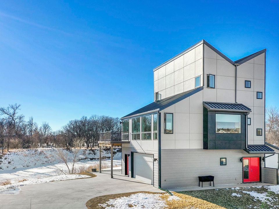 Tired of 'cookie-cutter' homes, you'll love this unique, custom-built home built by Mindt Construction, designed by architect Chris Hawley, much thought went into the design and construction! The ground level has in-floor heat, this includes the garage, and a multiple use room that currently has a doggie door, access to a dog run, also access to the patio. The first level includes the living room, dining room, kitchen, laundry area with 3/4 bath and currently a TV room, which could be changed into a bedroom. The kitchen has quartz counters, a large island, with storage on both sides, and the living/dining has floor to ceiling windows (Marvin) for natural light and a phenomenal view of the river, sunrises, and wildlife (deer, beavers, muskrats, geese...), it's very private and relax on the deck off the dining room. The top level includes the Master bedroom with large closet, full bathroom with a jetted tub, double sinks, and large tiled shower. Another bedroom is currently being used as a walk-in closet. Also there is an office/exercise room, this room and the bathroom have maple barn doors. The detached garage is great for storing lawn and garden equipment. there is a fenced-in garden with some raised garden beds and good soil. A lot of thought and plans went into this home, it's all-high end from the finishing work to thick concrete walls, that are the first 10' of the main level. In documents there is a list of features of this home, PCS, and utilities. Call your realtor to check out this beautiful, unique home!