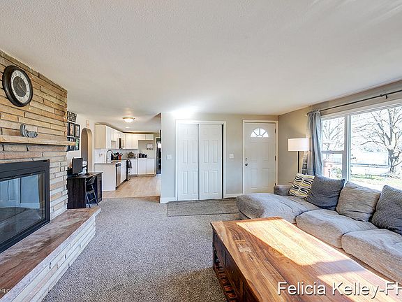This 4 bedroom and 1 bath ranch style home sits on almost half an acre lot and has an amazing view of Turk Lake right out the large front window. Beautifully renovated kitchen with all new cabinets, granite countertops, and flooring with a large living space just off the kitchen featuring a gorgeous fireplace. Bathroom is completely updated with new granite vanity, cabinets, and fixtures. The great room/master bedroom is located just off the kitchen and features a large sliding door leading outside to the carport large enough for two cars or a patio to relax and enjoy a view of the lake. There are three more lovely bedrooms located on the main level. The basement level houses the laundry, a 2nd fireplace, and is ready for your finishing touches with space for two additional bedrooms.