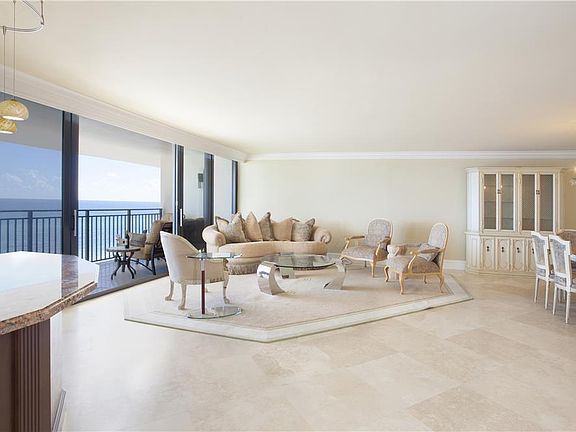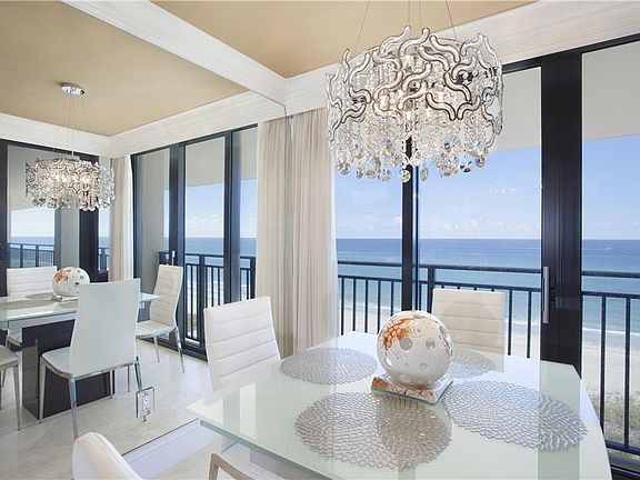 Location South Ocean Boulevard, Boca Raton, Florida. Placide, a stylish boutique condominium, presides over a magnificent stretch of Gold Coast oceanfront with direct access to miles of exquisite sandy beaches. Only 54 residences enjoy this exclusive address, with the added privacy of each elevator foyer serving just 2 units per floor. This spectacular architectural masterpiece is introduced by a stunning, award-winning lobby by a renowned Miami designer, with its entrance attended by a 24-hour doorman. Other luxuries include the beautiful oceanside pool, elegant club room, card room, state-of-the-art exercise room, and private parking garage. Placide’s prime location offers close proximity to Mizner Park’s world-class shops and restaurants as well as Boca Raton’s private executive airport. Residence A stunning top-to-bottom renovation, this brand-new direct oceanfront residence has been meticulously conceived with the finest details and designer finishes. Featuring spacious open living areas, 3 bedrooms, and 2½ baths in 2,140+/- total square feet, this impeccable domain is enveloped in floor-to-ceiling sliding glass doors to fabulous stone-floored balconies overlooking the majestic ocean as well as city scenes. Deep crown moldings edge the smooth ceilings, and polished travertine marble floors define the living areas, while the bedrooms are finished in designer carpeting. The generous living room sets the stage for gracious indoor/outdoor entertaining, served by a granite-topped custom bar and opening to the sweeping oceanfront balcony through an entire wall of full-height sliding glass doors. Culinary features of the gourmet kitchen include custom cabinetry, granite counters, and stainless steel appliances, with beautiful views captured through the oceanfront breakfast room, transitioning to the balcony. A guest powder room and laundry/utility closet are conveniently situated. Opening to sunset views facing the city, the sumptuous master suite features a dressing room with granite vanity, custom-fitted double walk-in closets, and marble-clad bath with tub and separate shower. Two more bedrooms with closet walls share another bath and also enjoy the city-views. Complete with garage parking, this exceptional Placide residence meets the most discriminating standards.