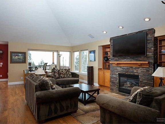 Nestled on top of Overturf Butte, you can have it all! Majestic views of Bend and the Cascades. Large lot in exclusive hilltop community. MASTER on Main, huge game room with fireplace and bar. Two giant decks, 5 bedrooms (3 suites) 6 baths, custom closets and blinds, wood floors, gourmet kitchen with granite counter tops, and a .43 acre fenced yard. Access trail to 40 acres of public land. Short term rental license (transferrable) in place and has wonderful rental history. This amazing home has 2 living area's that you can lock off and generate income or have multi-generational living. Check out the 3-D Matterport in the media section