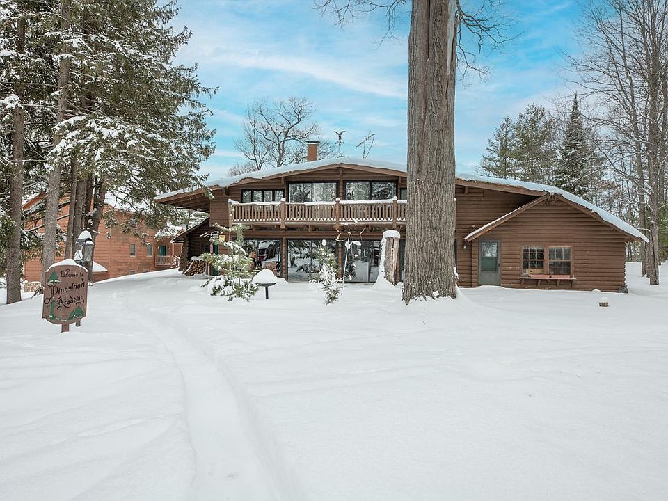 Family Compound, Event Lodge, Corporate Retreat, Bed & Breakfast...the possibilities are endless! Boasting 10 bedrooms and 9.5 bathrooms with 195' of frontage on Carpenter Lake. Move right in, property being sold furnished. Expansive main level with rustic charm features a great room with fireplace and views of Carpenter Lake, large kitchen and dining room, office, library and more. 8 bedroom suites cover the second level of the home. Enjoy peaceful water views from the deck or walk out lower-level patio. Permanent pier for your water toys. Two car detached garage for additional storage. Located close to ATV and snowmobile trails, minutes away from the Eagle River/Three Lakes 28 Chain of Lakes, as well as the 642,000 acre Nicolet National Forest. A little TLC will go a long way in bringing this property back to life.
