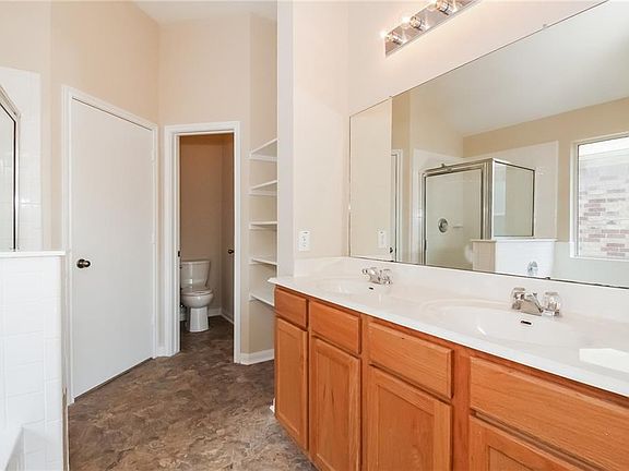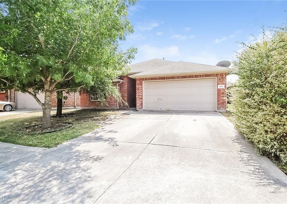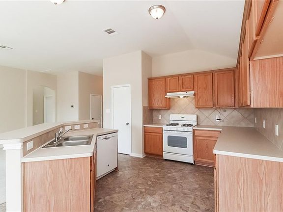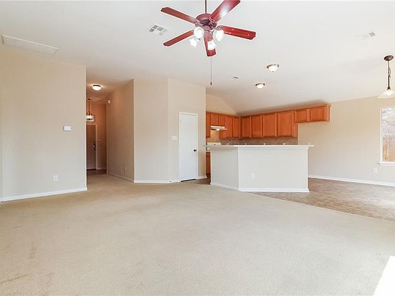 This Buda one-story home offers vaulted ceilings, a master walk-in closet, and a two-car garage.